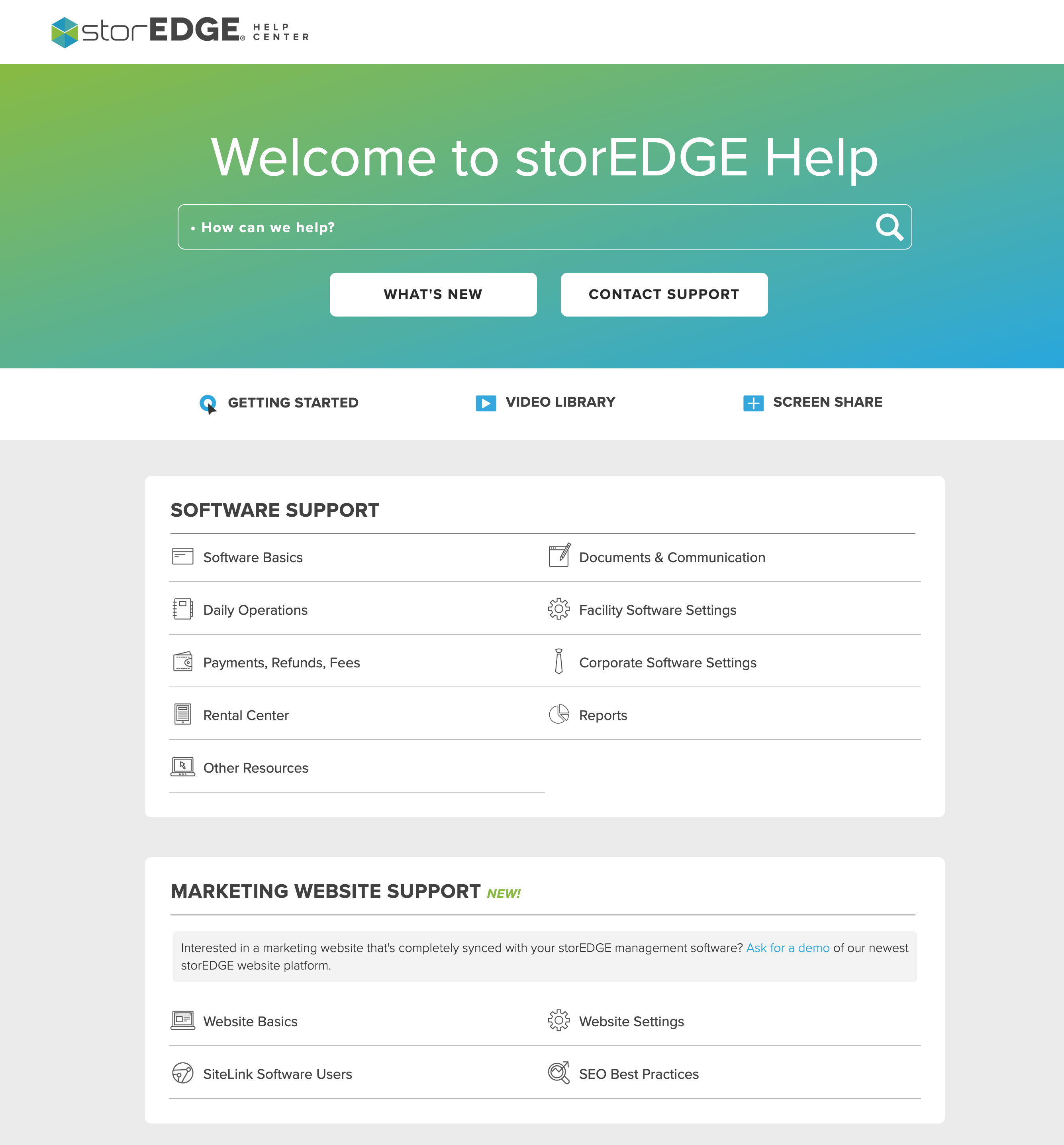I have maintained the storEDGE Help Center since 2016. The help center, which is hosted on Zendesk, serves as a knowledge base for both storEDGE facility management software and the storEDGE integrated website platform. I created the style guide for the help center content and have been the main contributor to the site since late 2017.